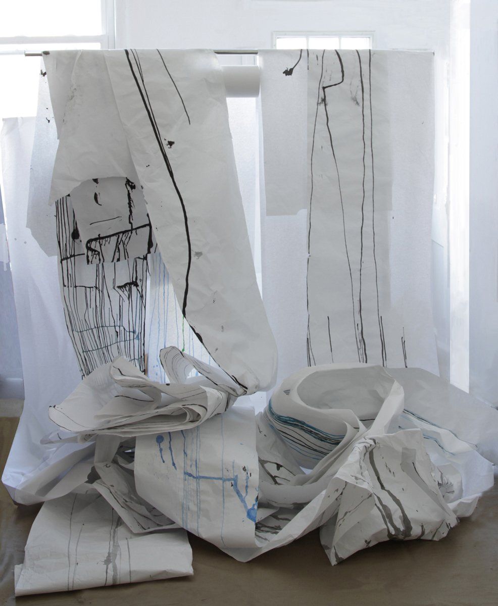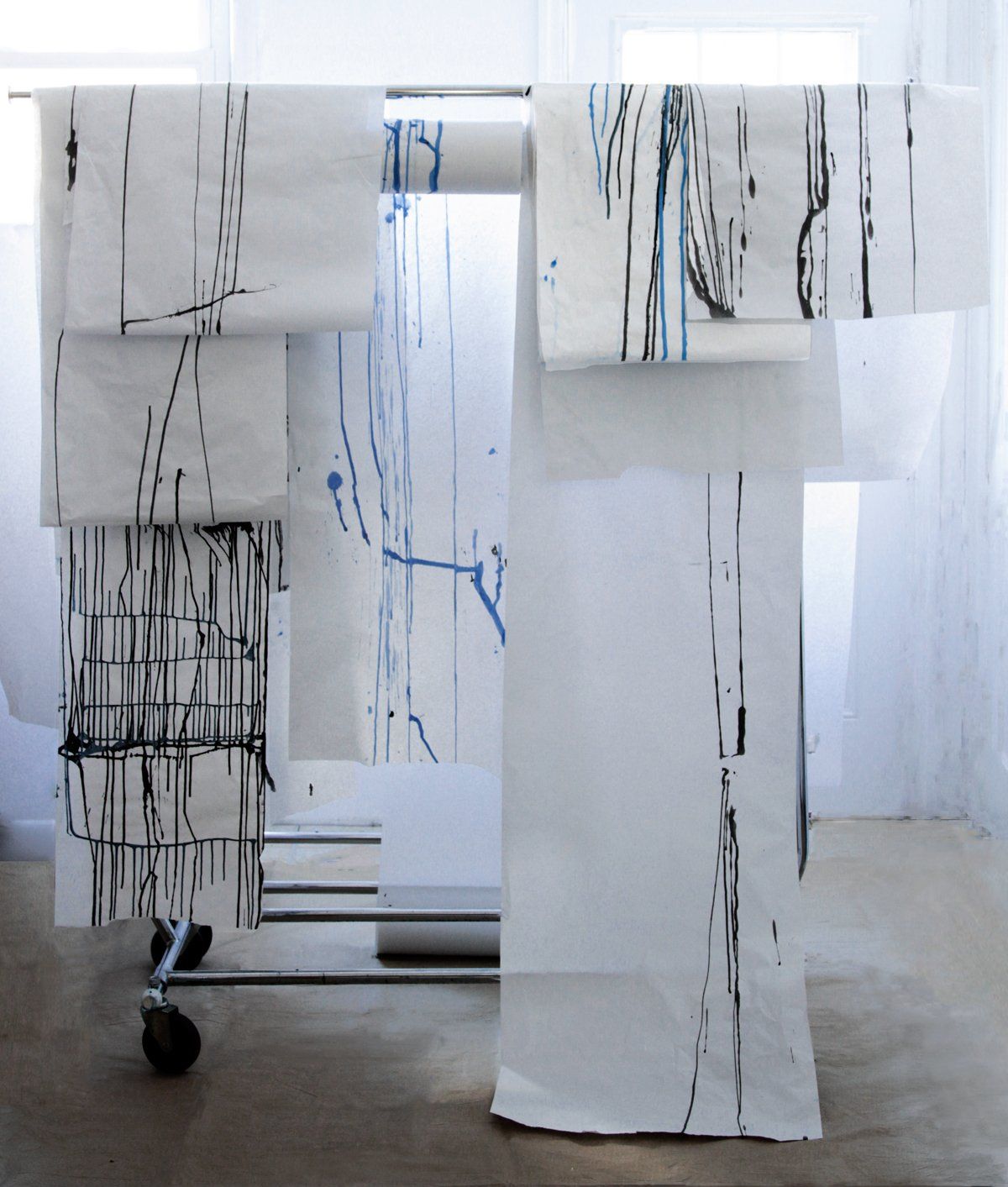 INK ON DISCARDED ROLL ENDS OF COMMERCIAL PAPER, RACKS (DIMENSIONS VARIABLE) 2014